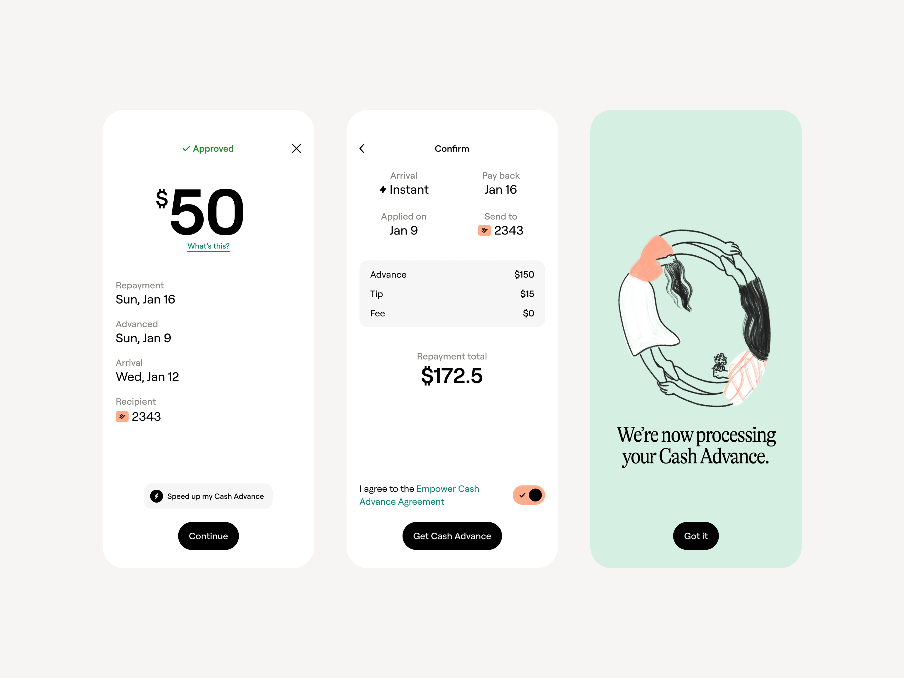 Empower tested Cash Advance with an exclusive beta group first to see how well it would serve their customers' needs. The results spoke for themselves, and Cash Advance was soon rolled out as a core feature to all customers.